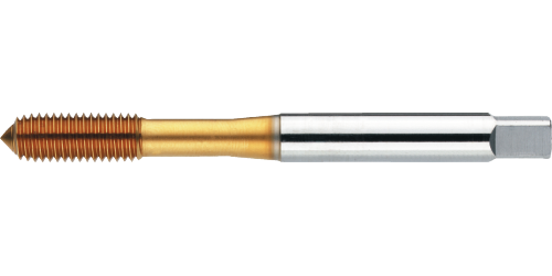 DIN 2174, 60°, verdikte schacht, voorvorming 3 gangen, vooral bij roltappen werkt de lagere wrijvingscoëfficiënt van de TiN-coating zeer positief, hetgeen resulteert in hogere snijsnelheden en een langere standtijd