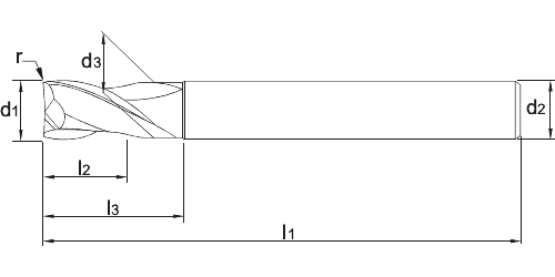 2 snijkanten, centrumsnijdendSpiraalhoek 30°Nano-Grain volhardmetaal (<0,2 micron)TiAlSiN gecoatFabrieksnormSnijkantradiusCilindrische schacht h5Cilindrische schacht DIN 6535-HAd1 ≤ Ø 6 mm +0,000/-0,012d1 > Ø 6 mm +0,000/-0,015High Speed Cutting