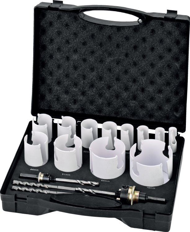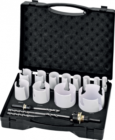 gevuld met zagen uit artikelgroep 61.130, t.b.v. materiaalsoort: hout, spaanplaat, multiplex, mdf, pvc, acryl, cellenbeton, gipskarton, poreuze steen, polyester en Trespa®