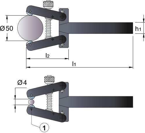 voor drukkartelrol 20x8x6 mm, type AA, BR, BL artikelnr. 75.174, houder aanpasbaar aan de diameter, waardoor er geen druk op het werkstuk ontstaat
