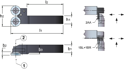 voor drukkartelrol 25x10x15/11 mm, type AA, BR, BL artikelnr. 75.197, houder met dubbele kop voor kartelen tot aan de borst