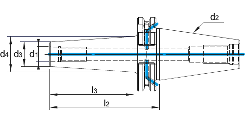 met SK-opname volgens DIN 69871, oppervlaktegehard HRc 58±2, met een treksterkte in de kern van min. 950 N/mm², tolerantie AT3, rondloopnauwkeurigheid van 0,005 mm, gebalanceerd G2,5 bij 25.000 omw/min