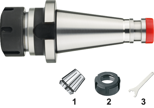 DIN 6499-C / ISO 15488, voor spantangen ER DIN 6499-B, met SK-opname volgens DIN 2080, oppervlaktegehard HRc 58±2, met een treksterkte in de kern van min. 950 N/mm², tolerantie AT3, rondloopnauwkeurigheid van 0,005 mm, incl. spantangmoer