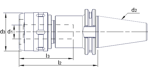 met SK-opname volgens DIN 69871, oppervlaktegehard HRc 58±2, met een treksterkte in de kern van min. 950 N/mm², tolerantie AT3, rondloopnauwkeurigheid van 0,005 mm, gebalanceerd G6,3 bij 15.000 omw/min