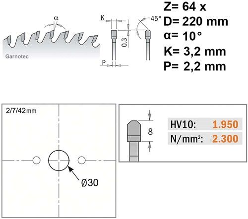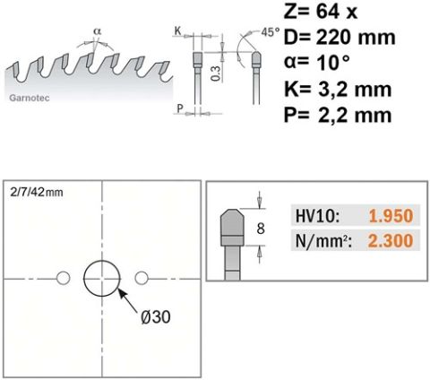 220x30x3,2 Z64*HW (hardmetalen tanden)* HPL, Kunststof …*