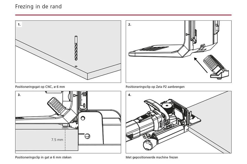 - Ideale combinatie: Deze methode combineert de precisie en efficiëntie van een CNC-machine en het snel en eenvoudig maken van een P-System groef met een Zeta P2
