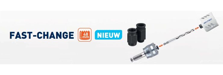 Vraag over Rotec 13-dlg. Gatzagenset '533 - Electricien' met Fast-Change adapters (ø22, 27, 32, 35, 38, 44, 51, 60, 68 en 76mm)