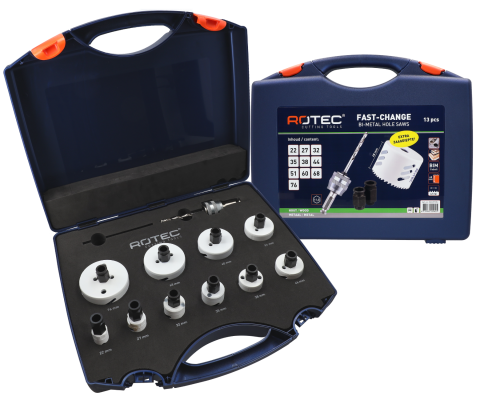 Rotec 13-dlg. Gatzagenset '533 - Electricien' met Fast-Change adapters (ø22, 27, 32, 35, 38, 44, 51, 60, 68 en 76mm)