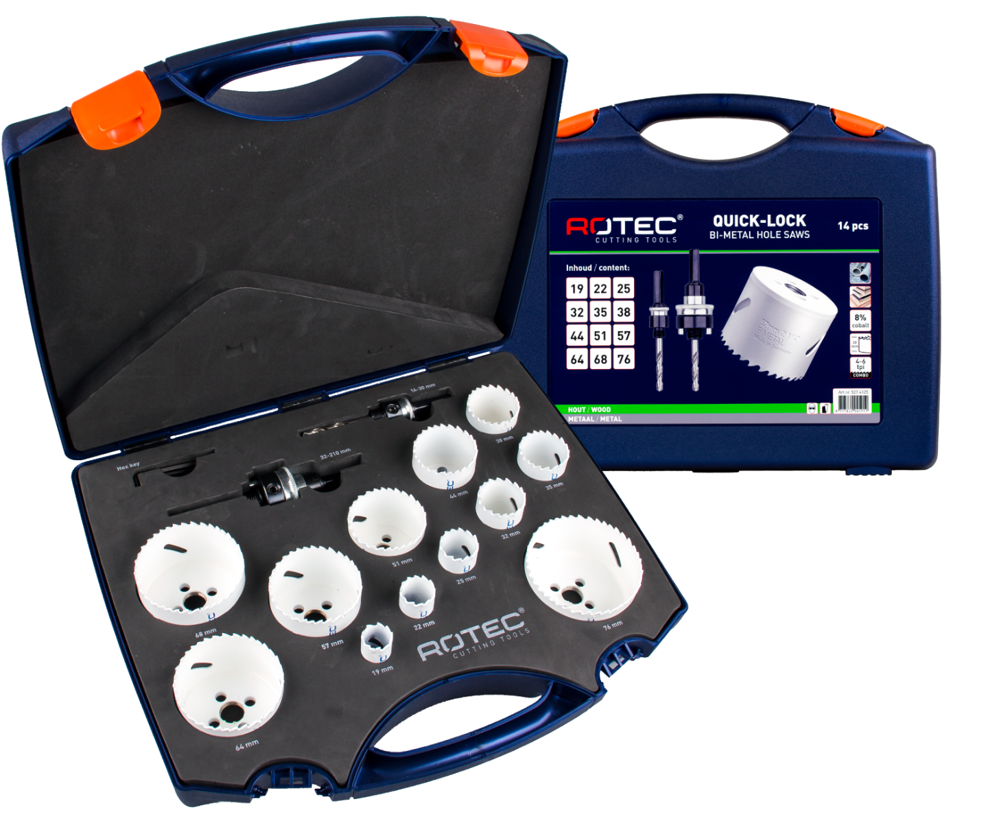 Rotec 14-dlg. BiM-Co gatzagenset type '527 - Allround' met Quick-Lock, ø19, 22, 25, 32, 35, 38, 44, 51, 57, 64, 68, 76 mm