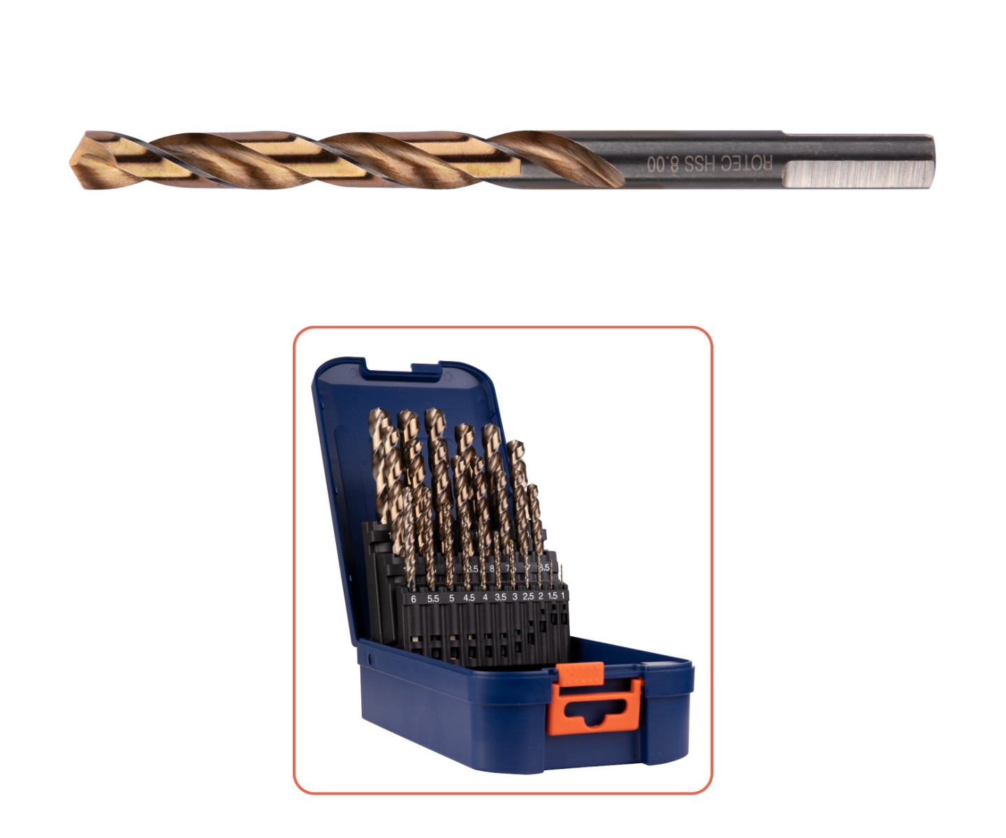 HSS-G spiraalboor, DIN 338, type HD spiraal, geslepen uitvoering, kruisaanslijping volgens DIN 1412-C, tophoek 135° en cilindrische schacht. Vanaf ø4 met 3-vlaksopname voor optimale klemming in boorkop. Zeer geschikt voor gebruik in accu-boorschroefmachines. Snel en precies aanboren zonder centreren, meer boren met 1 acculading door de gereduceerde snijkrachten, zuivere en ronde gaten, ook in plaatmateriaal.
