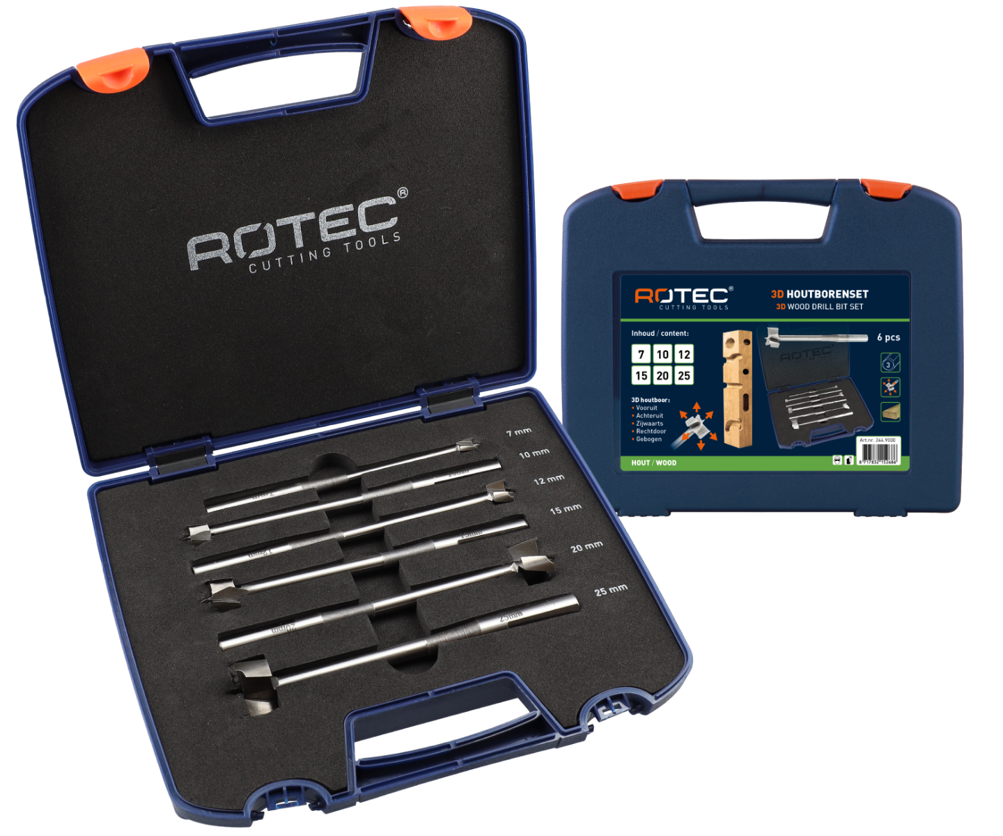 Vraag over Rotec 6-delig 3D-houtborenset, type '244', in kunststof koffer