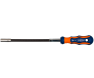 Bitschroevendraaier met flexibele ommantelde schacht, ergonomische 2C-greep, RVS huls met C-ring en een sterke permanente magneet.