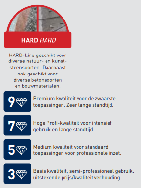 Voorzien van robuste lasergelaste turbo segmenten welke zorgen voor minder wrijving, dit resulteert in een hogere zaagsnelheid.