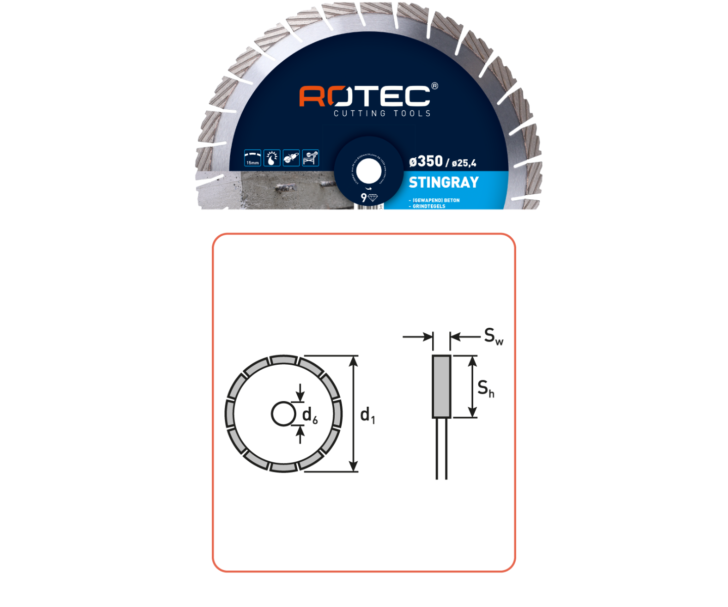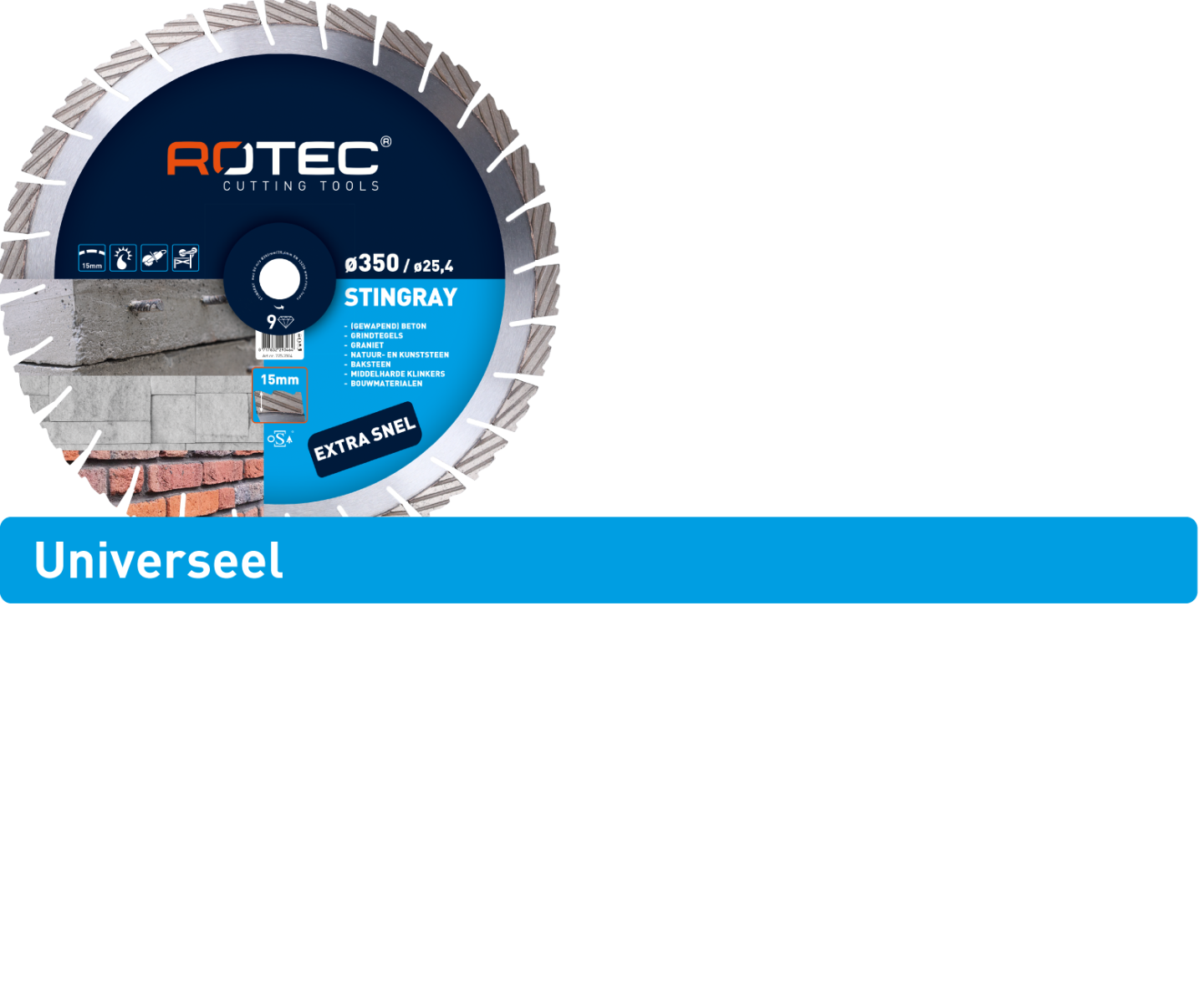 High-performance diamantzaagblad voorzien van lasergelaste, 15mm hoge “Arrow” segmenten voor extra snelheid en zeer lange standtijd.