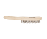 Houten handborstel voorzien van 0,3 mm roestvast kwaliteitsstaaldraad.