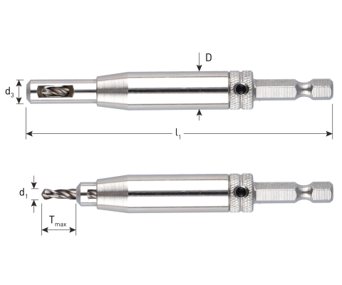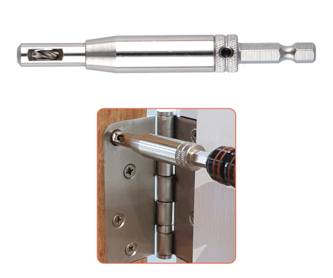 Zelfcentrerende scharnierboor met E6.3 bitopname voor het gebruik in (accu-)boormachines.