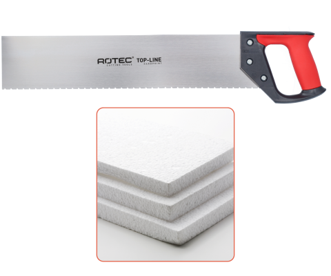 Hoogwaardige zaag t.b.v. isolatiemateriaal, tempex en steenwol voorzien van speciale groepvertanding. Ergonomische kurkhandgreep is zowel links- als rechtshandig te gebruiken.