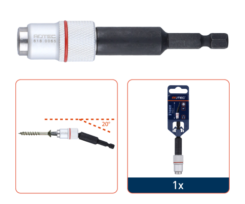 Magn. bithouder E 6,3 x 65 mm voorzien van magneet en met kogelgewricht (max 20°).