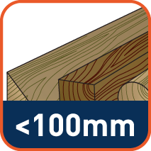 Constructiehout (<100mm), houten wand (<100mm), spaanplaat, MDF (6-60mm), verlijmd hout, kunststof (<100mm), speciaal voor invallend zagen.