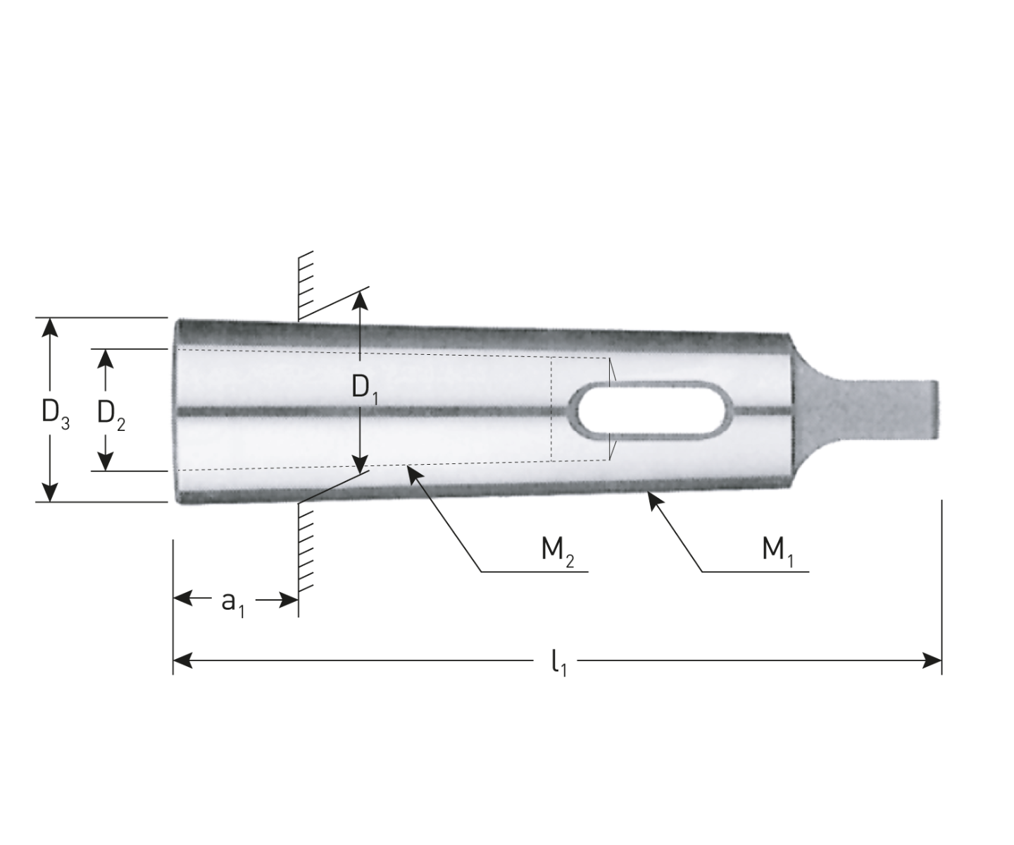 UitvoeringReduceerhuls, DIN 2185, voor morsekonus, geheel gehard, uit- en inwendig precisie-geslepen.