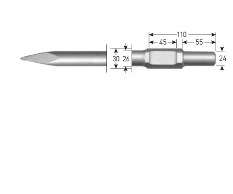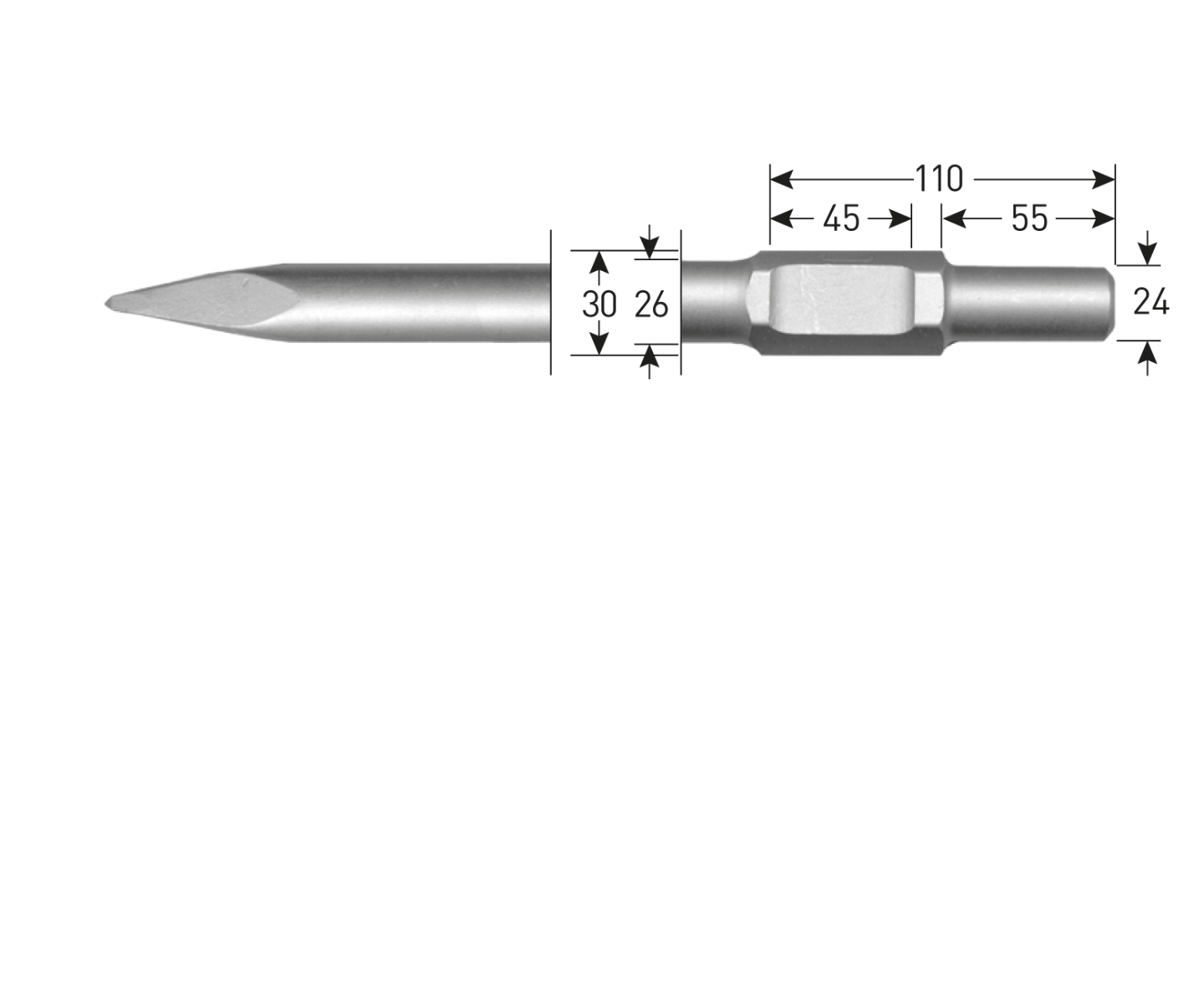 Puntbeitel, opname zeskant 30mm / ø24x55
