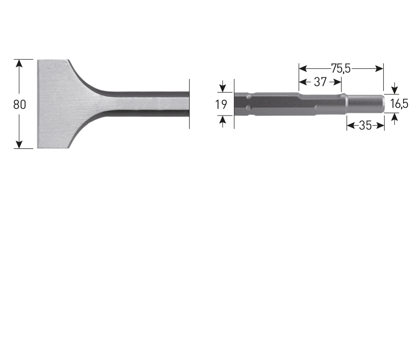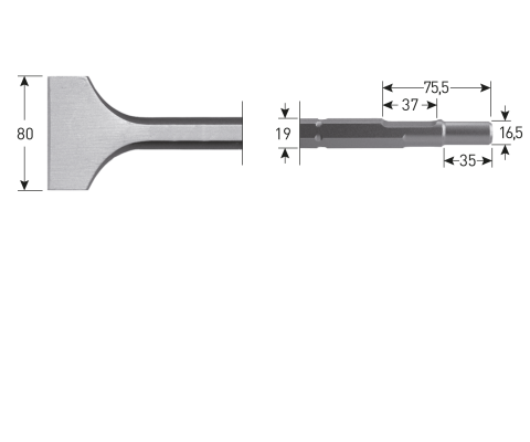 Spadebeitel 80mm, opname zeskant 19mm / ø16,5x35