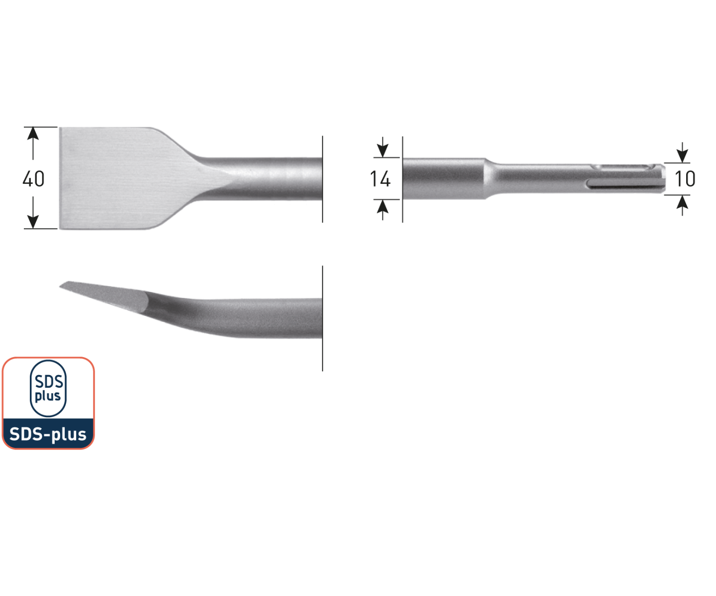 Rotec type "215" spadebeitel, gebogen, SDS-plus, 40 x 250 mm.