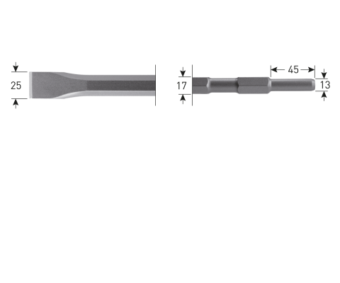 Vlakbeitel, opname zeskant 17mm / ø13x45