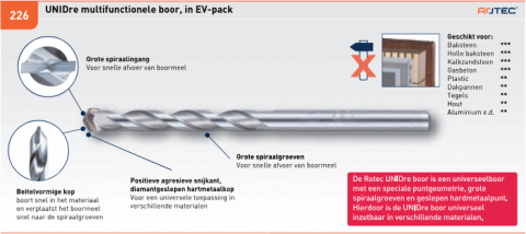 Je plaatst een review over:Rotec type "226" UNIDre multifunctionele boor, Ø 3 t/m 14