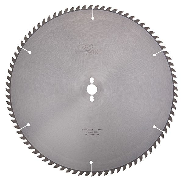 Hardmetalen zaagblad van RS Tools Ø 500 z= 84 Wisseltand. Van hoge Duitse kwaliteit!, voor het splintervrij afkorten en zagen van triplex en spaanplaat. Hoe fijner de vertanding des te fijner de zaagsnede.