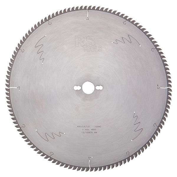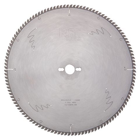 Hardmetalen zaagblad van RS Tools Ø 400 z= 120 Trapezium Vlaktand Negatief. Van hoge Duitse kwaliteit!, voor het zagen van harde kunststoffen als trespa en non ferro metalen als aluminium.