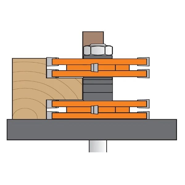 Deze frees is ideaal voor het maken van lange en stevige pennen voor uw deuren. Pas de plaatdikte aan door simpelweg de afstandhouders tussen de bovenste en onderste frees toe te voegen of te verwijderen.