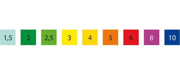 Maat 1,5; 2; 2,5; 3; 4; 5; 6; 8; 10
