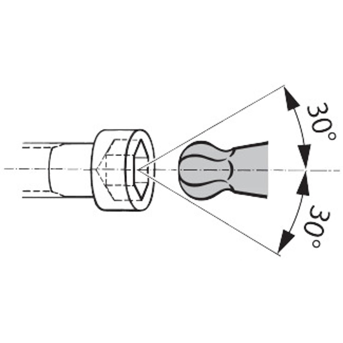 Gebogen schacht, kogelkop tot een hoek van 30° schuin aan te zetten. Maximale hardheid en bijzondere taaiheid dankzij speciale PB Swiss Tools-legering.