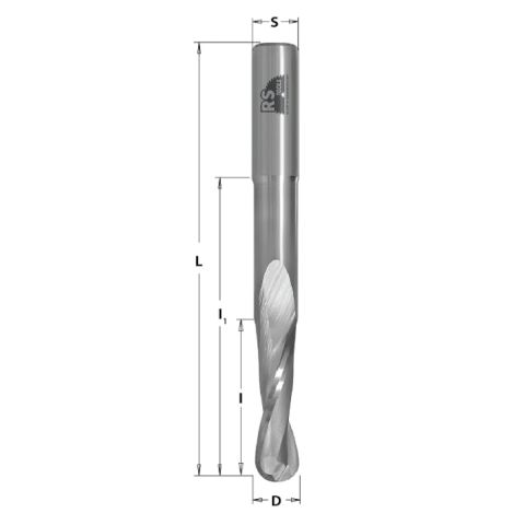 Technische details• 2-snijders spiraalfrees• Postitieve spiraal – opwaartse spaanafvoer• Afwerkgeometrie• Ronde punt• Gepolijste groef voorkomt ophopende afvoer