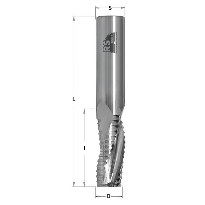 Technische details• 3-snijders spiraalfrees• Postitieve spiraal – opwaartse spaanafvoer• Ruwgeometrie• Gepolijste groef voorkomt ophopende afvoer