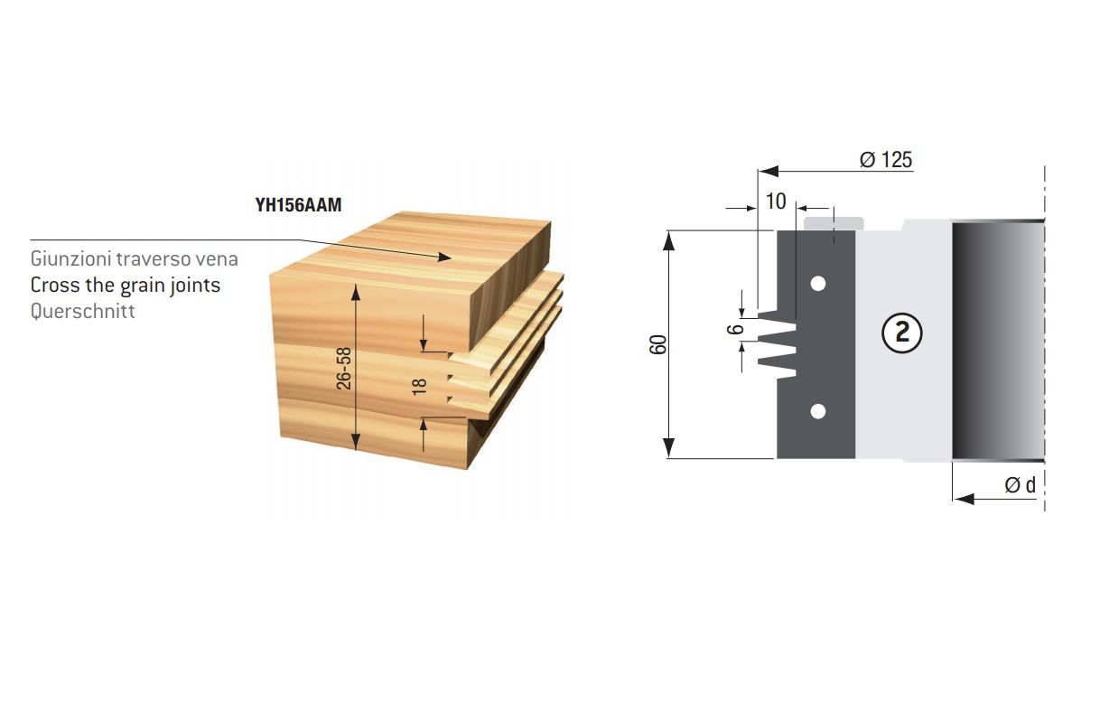 Beste lijmverbinding onstaat door te frezen dwars op de nerf van het hout. (YH152AAM: along the grain joints. YH156AAM: across the grain joints)