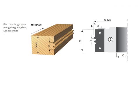 Beste lijmverbinding onstaat door te frezen dwars op de nerf van het hout. (YH152AAM: along the grain joints. YH156AAM: across the grain joints)