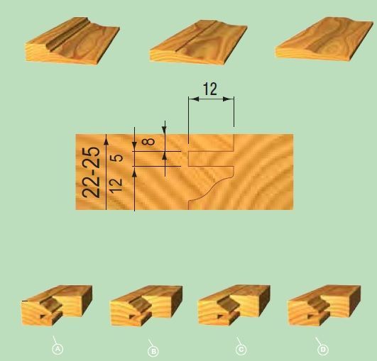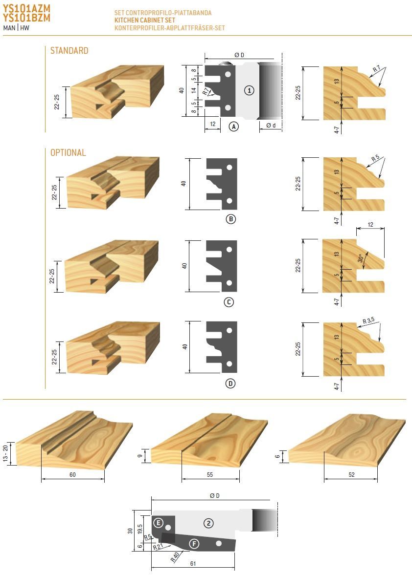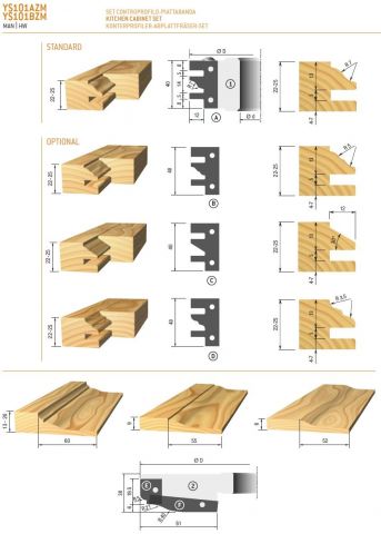 Set met 2 frezen in aluminium uitvoering met standaard hardmetalen geprofileerde messen. Profiel A inbegrepen in de set, profielen B, C en D zijn apart verkrijgbaar.