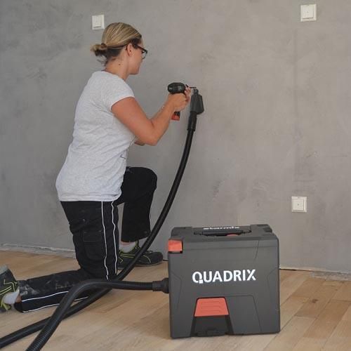 De Starmix Quadrix L is een snoerloze accu stofzuiger voor mobiele inzet in de industrie, in de bouw of in de werkplaats. De Starmix Quadrix stofzuiger is licht van gewicht en compact van formaat en neem je gemakkelijk mee naar jouw klus.