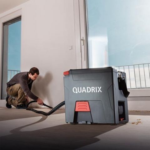 De Quadrix zuiger wordt compleet met accessoires geleverd zodat je goed uit de voeten kan op de bouwplaats. De accessoires kunnen opgeborgen worden in de geïntegreerde opbergruimtes in het apparaat.