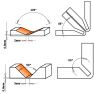 Zoals het overgrote deel van de CMT-gereedschappen, laten deze met twee snijkoppen een grote variatie aan bewerkingsmogelijkheden toe. Ze voeren preciese en afgewerkte insnijdingen op panelen en kassen uit. Ze kanten boorden af, tekenen de allermooiste letters. Vergeet daarenboven niet, dat we u de "frees met geleidelager" kunnen aanbieden: een veelzijdig instrument dat toelaat eender welk profiel uit te voeren. Zoals alle CMT-gereedschappen, hebben deze frezen een lichaam in speciaal staal met hoge weerstand, oranjekleurig bekleed in fluorcarbide PTFE hars en snijkoppen in mikrokorrel tungsten-carbide.