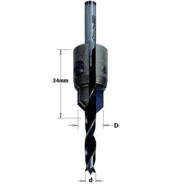 Verstelbare verzinker voor boor Ø3 tot Ø7 mm.