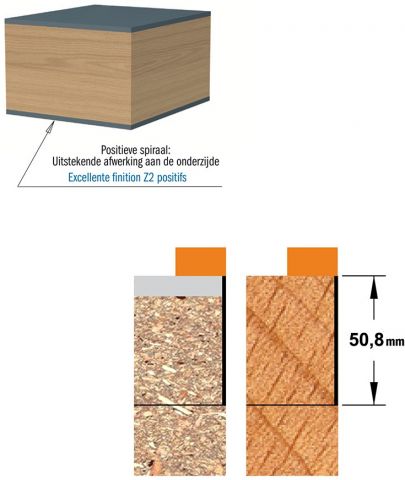 Dit vermindert de snijdruk, zorgt voor een gladder freesresultaat en voorkomt splinteren van het materiaal.