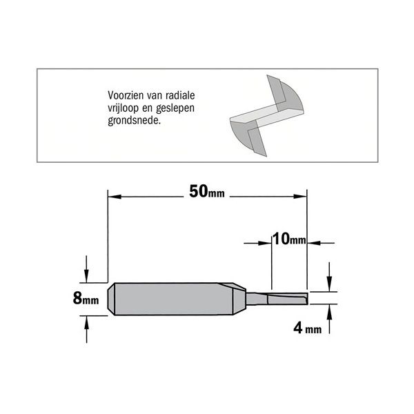 CMT groeffrees Ø4x10/50mm. Z=2 S=Ø8