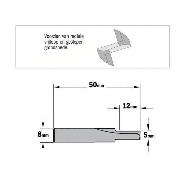 CMT groeffrees Ø5x12/50mm. Z=2 S=Ø8