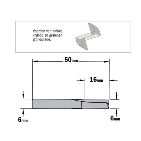 CMT groeffrees Ø6x16/50mm. Z=2 S=Ø6