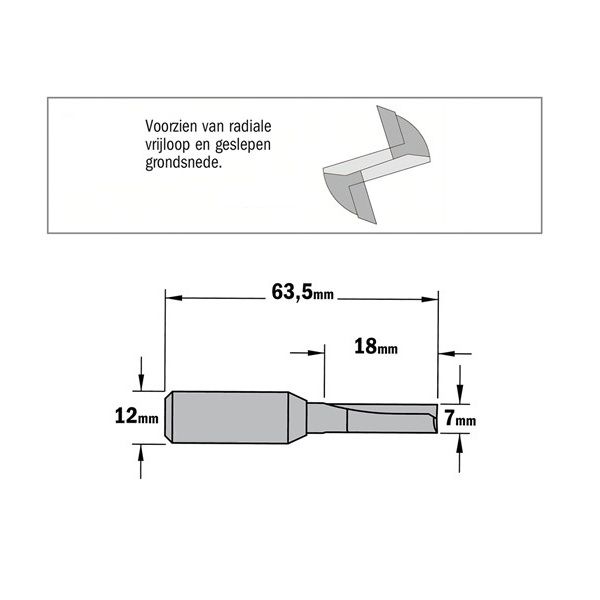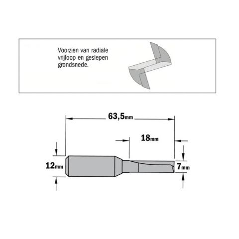CMT groeffrees Ø7x18/63,5mm. Z=2 S=Ø12