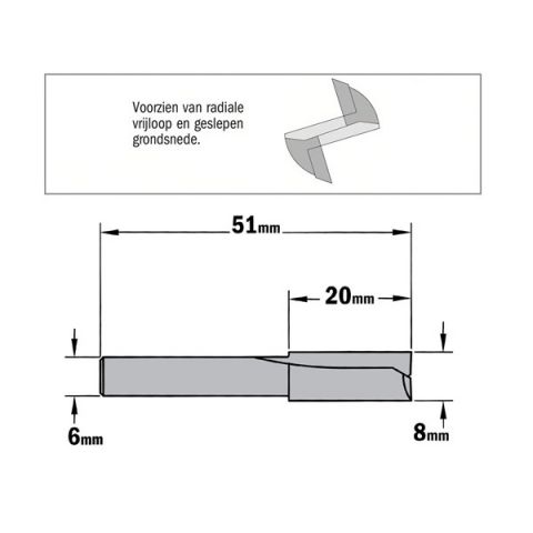 CMT groeffrees Ø8x20/51mm. Z=2 S=Ø6