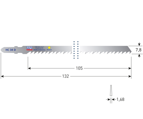 Extra lang en dik CV-stalen zaagblad voor alle houtsoorten en kunststof.